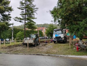 Biserica din lemn care va fi montată în curtea din fața unității medicale este donată și trebuie doar asamblată, după ce aici va fi turnată fundația.