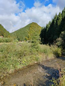 Drumul pleacă din Cheile Tăii și se deschide, la un moment dat cu acest loc spectaculos, care, în următoarele zile, va deveni și mai evident colorat în galben și verde.