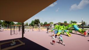 Zona sud-vestică va găzdui un amfiteatru modern, cu anexe și iluminat ambiental, un spațiu ideal pentru evenimente culturale, spectacole și activități comunitare.