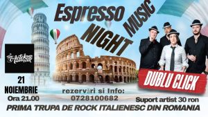 Dublu Click, prima trupă de rock italienesc din România, aduce un tribut marilor artiști italieni, reinterpretând hiturile care au marcat generații întregi de iubitori ai muzicii. Așa că țineți cont: 21 noiembrie Petroșani, Aztek Caffe.