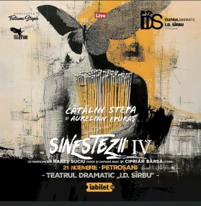 Dar, dacă rămâneți în oraș, aflați că puteți fi alături de Cătăin Stepa și Aurelian Epuraș, adică  SINESTEZII. Spectacolul are loc vineri, în 21 noiembrie la Teatrul Dramatic I.D Sîrbu din Petroșani, de la ora 19,00.