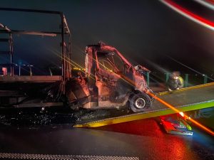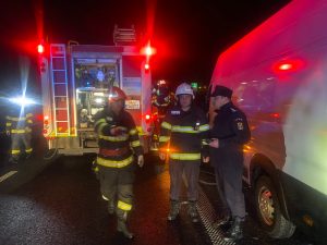 Impactul dintre autovehicule a provocat aprinderea autoutilitarei, care a fost cuprinsă de flăcări și distrusă aproape în totalitate. Pompierii militari au intervenit rapid pentru stingerea incendiului și pentru asigurarea măsurilor de prevenire a altor pericole.