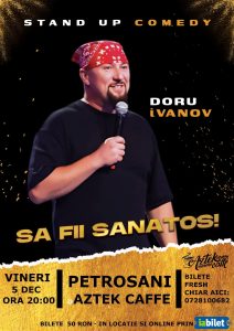Iar la Aztek Caffe e stand up comedy cu Doru Ivanov, vineri, de la ora 20.,00.