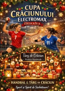 Sâmbătă, de la ora 12,00 este și Cupa Crăciunului Electromax, un eveniment ce are loc la Sala Polivalentă din Petroșani. Puteți ajunge acolo să vă bucurați de handbal de calitate, produse hand-made, dulciuri de casă pregătite de cele mai frumoase mămici și multe alte surprize.