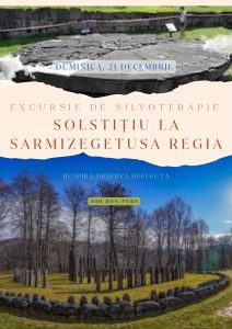 Puteți încheia weekendul la Sarmizegetusa. La solstițiul de iarnǎ, axa Pǎmântului este înclinatǎ la cea mai mare distanțǎ de Soare, ceea ce face ca aceasta sǎ fie, concomitent, cea mai scurtǎ zi și cea mai lungǎ noapte a anului. Suntem invitați, așadar, în spațiul sacru de la Sarmizegetusa Regia, într-o imersiune ghidată în naturǎ, duminicǎ, 21 Decembrie.