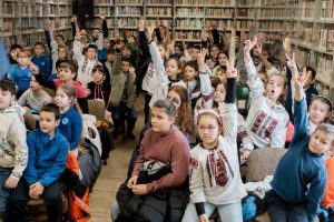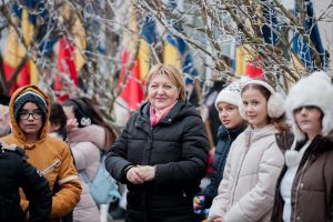 A urmat un moment plin de emoție, de bucurie și entuziasm: tinerii purtători de drapele tricolore au intrat în curtea bibliotecii unde au fost așteptați de bibliotecari, cititori, tineri și vârstnici, care s-au prins într-o însuflețitoare Horă a Unirii. Acordurile acestui minunat cântec patriotic au răsunat zeci de minute, spre bucuria participanților.