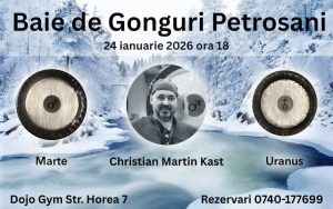 Sâmbătă, 24 ianuarie, dacă doriți și altceva, începând cu ora 18.00, cu ajutorul gongurilor planetare Marte și Uranus puteți participa la un eveniment inedit la Dojo Gym. Veți putea face „o baie de gonguri”, un moment inedit organizat de Ancient Sound Feeling.