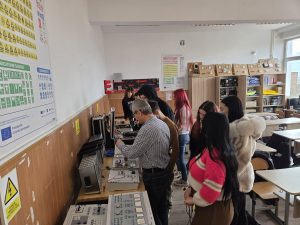 Dar în liceu există și un laborator de instalații electrice. Și el a fost dotat în cadrul acestui proiect.. În laborator sunt truse întregi de scule, sunt aparate de măsură și bancuri de lucru, dar și calculatoare. Pe de o parte, elevii simulează defecte direct pe bancul de lucru, după ce învață teoretic, iar mai apoi, simulează și pe calculator. Este, practic, cea mai utilă metodă de învățare care combină teoria cu practica.